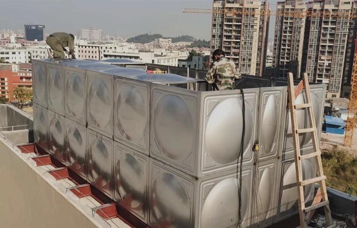 1、不銹鋼拼裝水箱由1*1的單張方形沖壓好的不銹鋼板拼裝焊接而成,與現(xiàn)代的建筑遙相呼應(yīng),具有時代感。