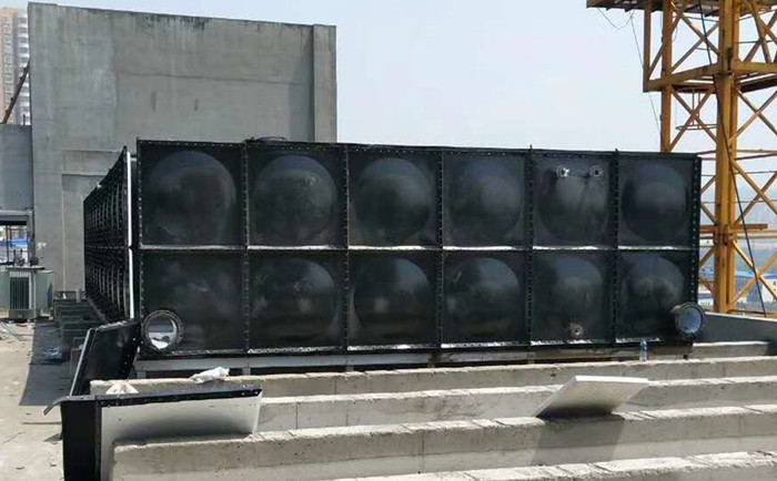 裝配式搪瓷鋼板水箱適用于建筑施工場(chǎng)地的臨時(shí)給水貯存,調(diào)節(jié)用水;采暖系統(tǒng)的膨脹、凝結(jié)水箱;也可做地質(zhì)勘察、消防工程等的臨時(shí)貯水水箱。 水箱制作及安裝注意事項(xiàng): 裝配式搪瓷水箱是采用Q235鋼板沖壓成1000*1000;1000*500和500*500的標(biāo)準(zhǔn)鋼板塊。周邊鉆孔,經(jīng)鍍鋅或其它防腐處理后再進(jìn)行現(xiàn)場(chǎng)組裝,組裝時(shí)標(biāo)準(zhǔn)塊之間夾橡膠墊,用螺栓連接。標(biāo)準(zhǔn)塊單塊重47.0kg和26.4kg。 水箱的進(jìn)水管、出水管及溢流管的管徑、位置由設(shè)計(jì)時(shí)決定:水箱四周應(yīng)有不小于700mm的檢修通道,箱底及箱頂不小于600mm。安裝時(shí)箱底四擊及箱底標(biāo)準(zhǔn)之間的連接縫要座落在支座上。若水箱作為熱水箱或膨脹水箱時(shí),橡膠墊改為耐熱橡膠墊。