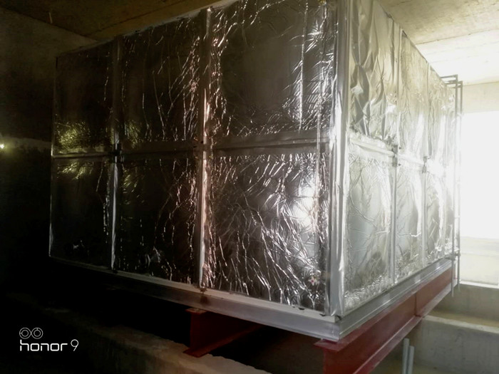 玻璃鋼橡塑保溫水箱安裝完成,水箱外部全部包裹橡塑保溫,使水箱內(nèi)部水更保溫。