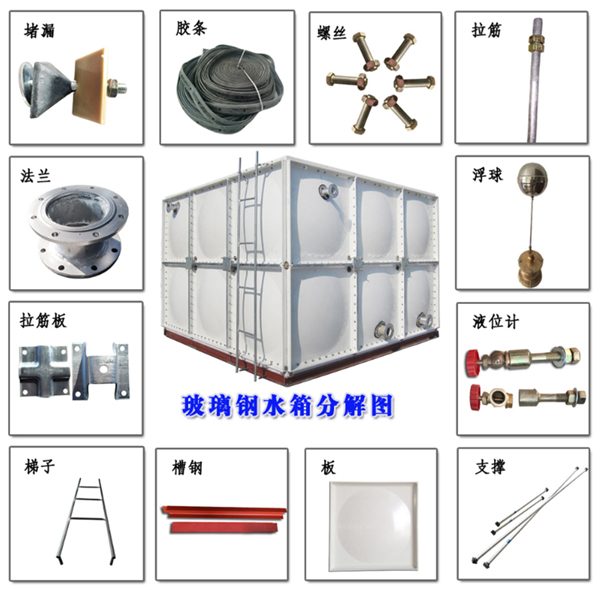 5、 玻璃鋼消防水箱標(biāo)準(zhǔn)配件包括:進(jìn)水管法蘭,出水管法蘭,溢流管法蘭,污水管法蘭,通風(fēng)孔,人孔,內(nèi)外梯等。所有開口位置均可在現(xiàn)場指定,但相關(guān)管道路徑和數(shù)量,用戶在訂購時(shí)應(yīng)提前指定;